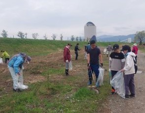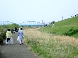 河川敷や堤防のゴミ拾いを約1時間行い、両会場合わせて可燃ごみ45袋、資源ゴミ35袋、粗大ごみと不燃ゴミ軽トラック1台分のゴミが集まりました。